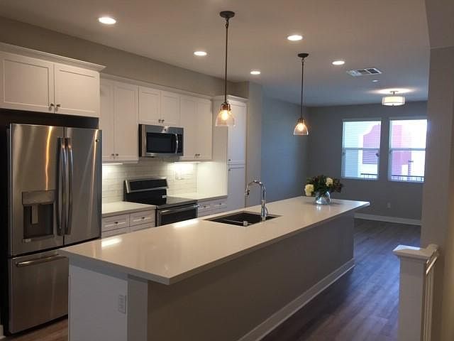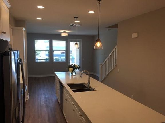 Hard surface plank flooring throughout home. Quartz countertop. Fridge/washer/dryer included. Solar powered townhome. Each bedroom has its own bath. Two-car, attached garage. Gated community with large pool area and spa. Owner pays trash. Buyer pays electricity and water.