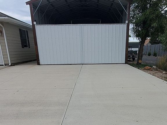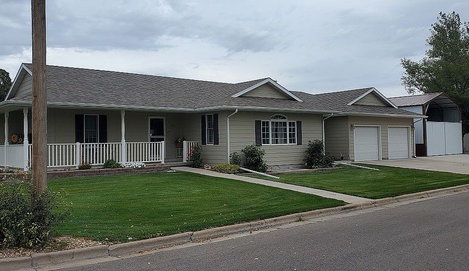 Outdoor living is also inviting with a wraparound porch on the front, and a pergola covered patio on the back. It is ideal for those pleasant Colorado evenings to just sit and relax and look up at the stars. Also included is a 20’ X 52’ enclosed car port with a fully cemented floor. Currently it hosts a 5th wheel camper with water and sewer inside the enclosure, and behind it an additional 15 ‘X 20’ storage area. Large swinging doors open to the south for easy access to the cemented driveway to the street, as well as an 8’ X 10’ roll up door on the east for easy storage of your outside lawn equipment. There is also a smaller garden shed with a loft, and a garden area that is bordered on 2 sides by mature abundantly producing raspberry bushes. The lawn has a self-draining sprinkler system for easy care in the fall. It has Class 4 impact resistant roof installed in 2024 and New Hot Water Heater 2024