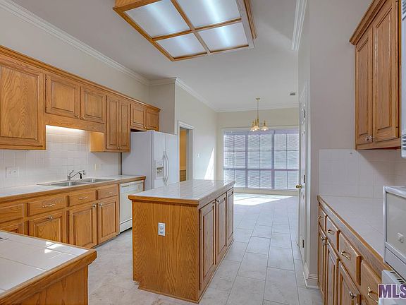 New Porcelain Tile floors just installed!! Located on a quiet street, this lovely four bedroom, three bathroom house in an established neighborhood off Highland Rd is waiting for you to call it home! Welcome your guests in the spacious foyer with wood floors and stacked crown molding which extends into the open Living and Dining Room. The Dining room is defined by paneled columns and has a large picture window overlooking the back patio and yard while the spacious living room boasts a beautiful gas fireplace and built-in cabinetry. The living room opens to the freshly painted kitchen and breakfast area. You'll love the island for meal prep as well as the built in wine rack. Another large picture window lets in tons on natural light! A guest bedroom and bathroom are located off the kitchen as well as a hobby/office/or laundry room (note that there are two laundry room's in this home!) which has access to the two car garage. The home's Master bedroom is sure to fit all of your king sized furnishings and has a large en-suite bathroom featuring a vaulted ceiling, double sinks, a jetted tub, separate shower and a walk-in closet. New carpet has been installed in all bedrooms and the foyer, kitchen and all bathrooms have been freshly painted. The second laundry room is conveniently located near guest bedrooms 3 and 4. Don't wait! Make this home yours today!