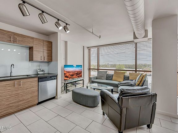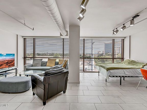 This 5th (top) floor studio faces north and is conveniently located in midtown Phoenix. Remodeled in 2013 this unit features modern finishes such as quartz countertops, stylish cabinets, neutral slate flooring, stainless appliances, and stackable washer/dryer inside the unit. Recent owner updates include Nest Thermostat, Nest smoke/carbon detector and 17 Smart Lights throughout. The Lofts on Thomas is Urban living at its finest. Amenities include a heated community pool, lounge, recreation area, fitness center, yoga studio, secure parking, BBQ grilling area, indoor bike storage, and a private dog run. The HOA fee is only $220/month.