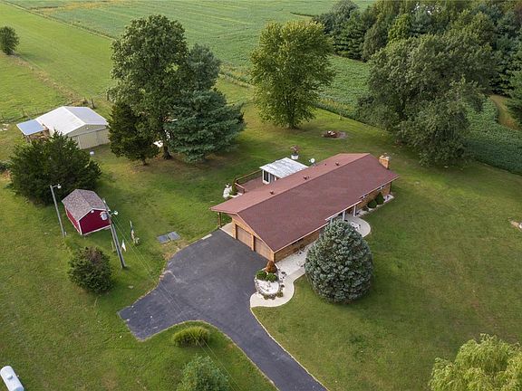 This house on 5+ acres is perfect for the times. In a beautiful country setting perfect for equestrian activities, you will love all of the features this property has to offer. There is a large 3-stall horse barn with tack room and hay storage, an air-conditioned "she or he shed", plus another larger outbuilding perfect for storing your toys or for use as a workshop, all with ample electric service. This property has fenced in pasture areas, a paddock area, fruit and nut trees and even a stocked pond at the back corner. There is a clean brick home with a recent roof, furnace, A/C, updated well equipment and even city water. Easy-living main floor with a large living room, breakfast room and kitchen overlooking a large deck, ample bedrooms and baths, plus half of the basement finished gives nearly 1700 ft.² of living area not including the sunroom. The basement has a large rec room with a massive wood-burning fireplace. Great setting! See the HD video and hurry over to see it live!