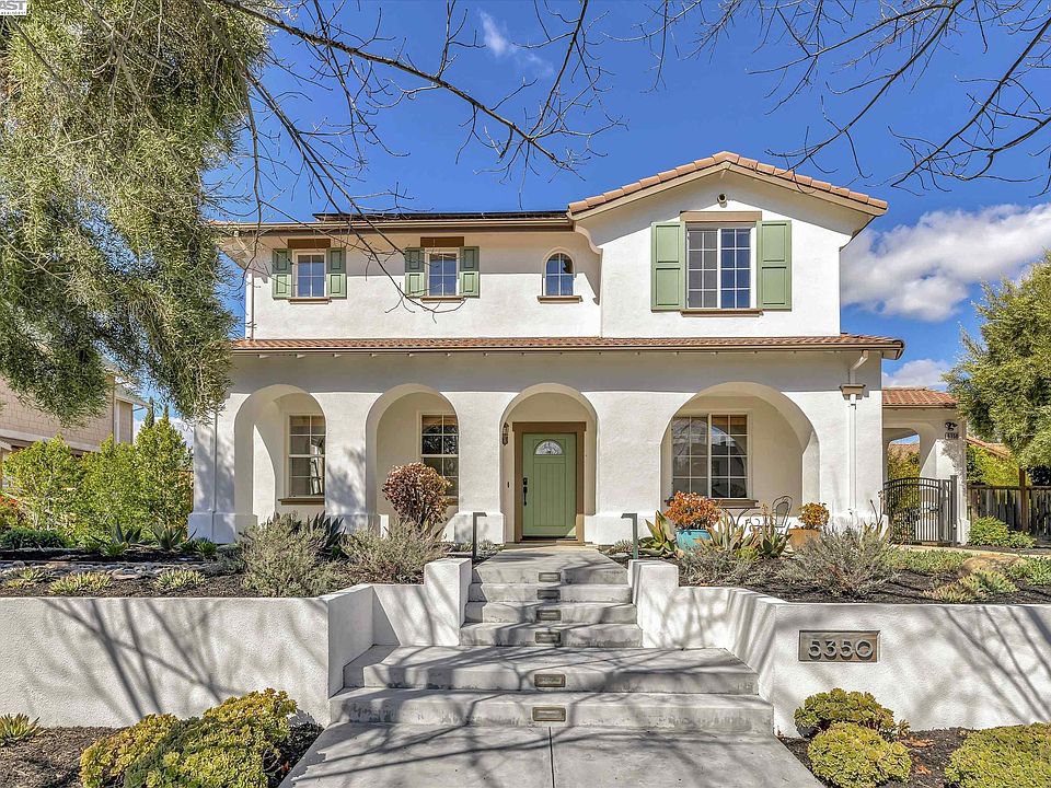 This stunning home is nestled in the vineyards of the South Livermore Valley, in highly desirable Dunsmuir. As you enter this Spanish Style home by Signature Properties, you are greeted by flooring of Brazilian Koa wood and Limestone, formal living and family rooms and a dramatic staircase. The updated eat-in gourmet kitchen includes stainless appliances, slab granite counters and an island. Rounding out the first-floor amenities are a family room with fireplace, a den/bedroom, a full bath and a laundry room. Ascend the stairs to the second level where you'll find a spacious primary suite with a walk-in closet and primary bath with heated floors and jetted tub, three more bedrooms and a full bath. Outside you’ll find professionally landscaped and hardscaped front and back yards that include a firepit, outdoor kitchen, covered patio, a garden retreat with fountain, mature fruit trees, a powered security gate and two-car garage with workshop. Other features include new carpet (to be installed), a newer HVAC system, owned solar, custom window treatments and whole house integrated WiFi! All of this is located a short distance from neighborhood parks, walking and biking trails, wine, and craft beer tasting, with easy access to downtown Livermore.
