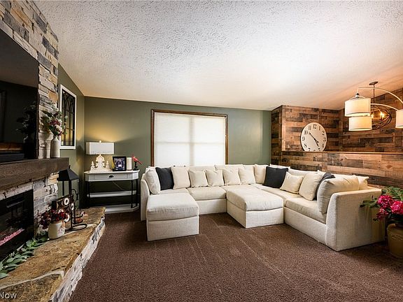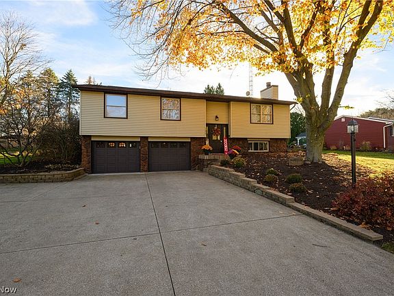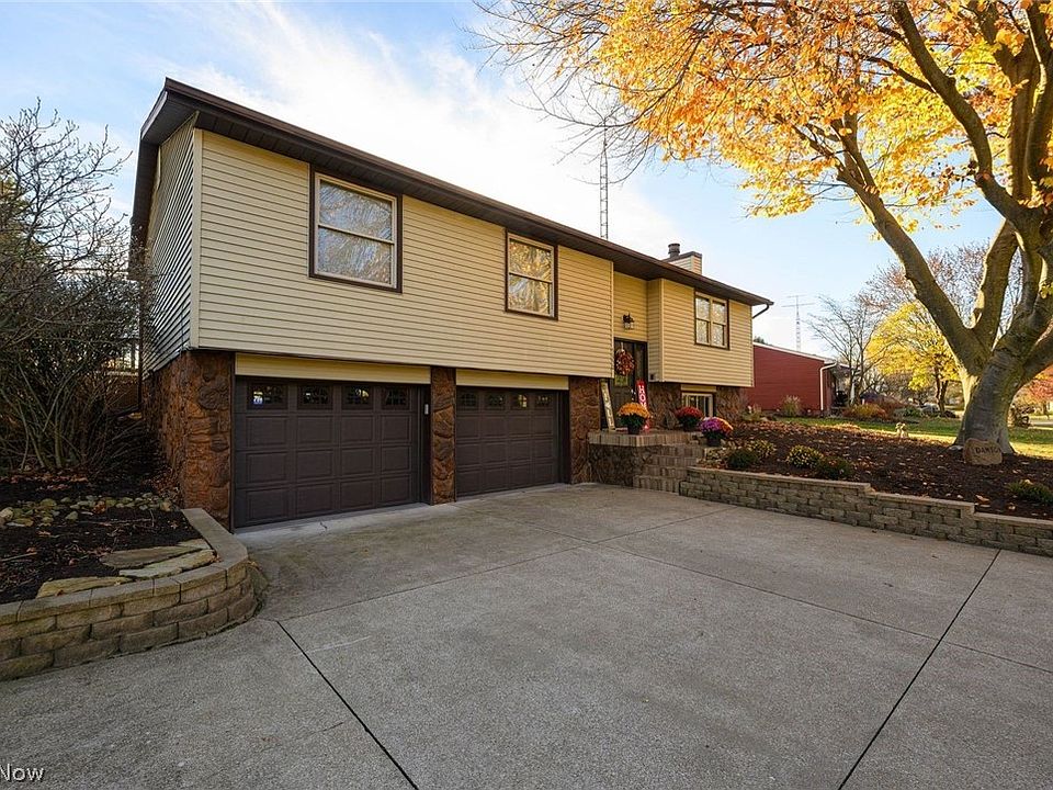 Wow! Impressive custom stone/brick-work throughout this gorgeous home! Schrock kitchen cabinets, Corian countertops, and stainless steel appliances complete this smartly designed kitchen. The spacious living room (with custom brick fireplace) and sizeable 4-season room addition add a nice open feel to the main living area. Three nicely sized bedrooms and an updated full bath with double sink vanity complete the main floor. The lower level includes a cozy family room (with fireplace), half bath, laundry/utility room, and access to the attached 2-car garage. This is the perfect property for entertaining family and friends... a large covered rear deck, an above-ground pool, and a lovely fire pit area will enhance those fun get-togethers. You can also enjoy fun-filled gatherings in the well-planned out garage or "man cave".