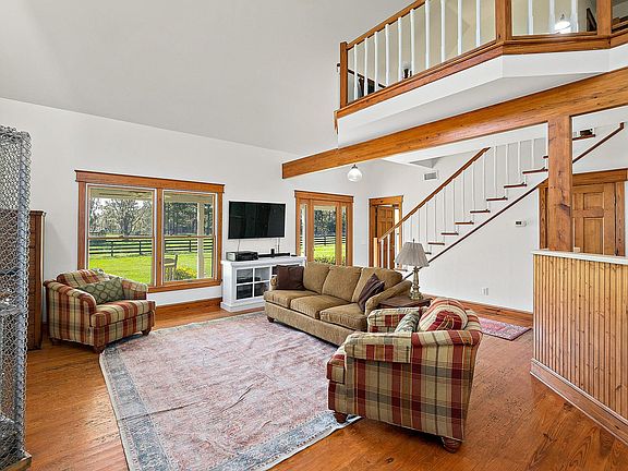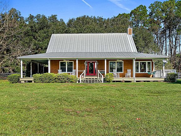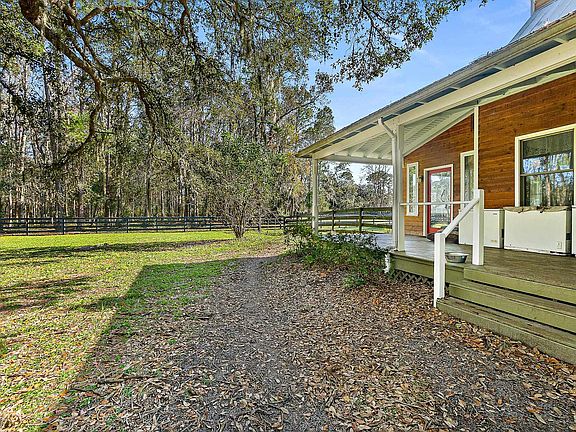 It’s time to slow down a bit…Escape the hustle and bustle, yet still remain close enough to town to not lose convenience, in this 2BR/2BA, 1850sf cedar-wrapped home. Down the quiet entry through Florida’s beautiful canopy of Oaks and Sweet Gums, the home is tucked away far from the road and nestled on 10 acres of fully fenced pristine land. On this private homestead, you’ll find a 6-stable barn with concrete floors in the main areas, power/water, an air-conditioned tack room, storage room and hay storage area. The property throughout is mostly cleared and grassed, including 4 slat board fencing with hot wire connections, multiple fenced and gated pastures and a high ceiling 48x30 pole barn. As you step across the welcoming wrap around porch and head inside, you are welcomed by a beautiful brightly lit open floor plan with expansive vaulted ceilings. The living space includes a kitchen, dining room and living room that flow seamlessly together. Warm and inviting, two sets of French doors lead to a gorgeous Florida room bathed in natural light and warm wood accents. The living room’s vaulted ceilings give it a grand spacious feel, while the wood burning stove promises to keep you cozy and warm on a chilly night. Overlooking the living room, the kitchen has ample cabinet space, Corian counters and a gas range for your culinary adventures. Wood floors continue through most of the home. Located downstairs, the master bedroom boasts spectacular views of the land, a walk-in closet, and an en-suite with a fully tiled shower, single vanity and an exterior door to the back. Ascending the stairs, you will land on a cozy 13x7 loft with a birds eye view of below making it a great spot to read the latest book or just relax. An additional bedroom and bathroom complete this second floor. This home features well water, a gas tankless water heater and a whole house generator. If you are interested in more contiguous land please review the offerings for the adjacent 16 acre and 20 acre parcels are also available for purchase and may be owner financed (see MLS #229057 and #229058). Welcome home.