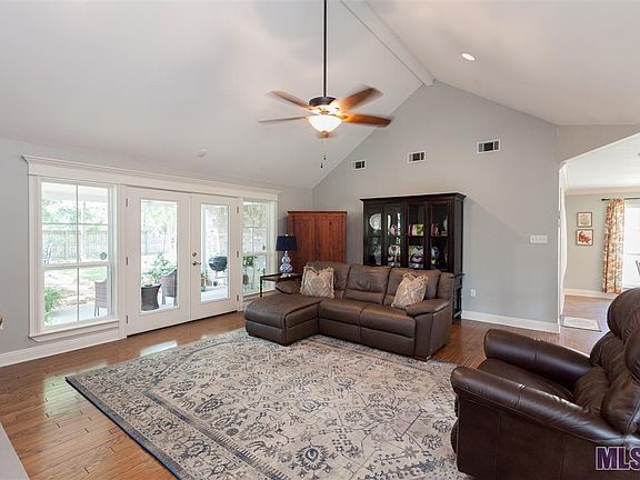 Charming, well-maintained 3 bed/2 bath home with expanded Sunroom, new AC, lushly landscaped backyard, and so many Updates! You'll enjoy the comfortable flow for entertaining family & friends, as well as an abundance of natural light enhanced by energy-efficient Pella windows (2014). Kitchen was updated in 2016 with fresh paint, quartz counters, undermount sink, custom backsplash, painted cabinets, new dishwasher, new gas range & custom hood vent, plus an island w/ breakfast bar, deep pantry, and the refrigerator and microwave remain. Kitchen and Dining areas have new porcelain tile floors and recessed lights. Large, cozy living room has a beamed cathedral ceiling, hardwood floors, fireplace with gas logs and a raised hearth. New French doors & windows overlook the patio and backyard. All of the bedrooms have laminate wood floors and ceiling fans. Master Bedroom has crown molding, recessed ceiling, walk-in closet, large linen/storage closet and French doors that open to the sunroom. The en suite bath features double sinks and large mirror, jetted tub and separate shower. Laundry room is conveniently located near the bedrooms. The hall bath was updated in 2016 with freshly painted cabinets, new countertop, custom framed mirror, new toilet & bathtub surround. Fabulous expanded sunroom is a focal point of the home with space for so many activities, and can be viewed from the kitchen, living room, or master bedroom - great for quiet reading, coffee in the morning, exercising on the treadmill, or doing homework. Updates include new paint, new ceramic tile floor, 3 ceiling fans, new AC unit, new windows & new exterior door that opens onto the side patio. You'll love the tranquil backyard setting with deep covered patio(added 2019), additional open patio area (patio table & 6 chairs remain), nice landscaping, and tree shaded yard! The front of the house has new gutters with screens, French doors(3 sets) and shutters. 2-car garage with storage room and a security system!