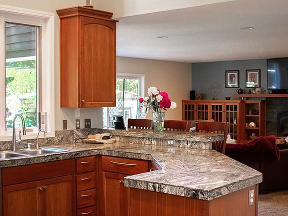 Beautifully remodeled home in popular Rivergrove Elementary school. Spacious open floor plan featuring newer kitchen w/slate flooring, granite counters, cherry cabinets and stainless appliances. All baths updated within the last 5 years. Great home for entertaining with large outdoor deck and patio, newer jacuzzi. Private .58 acre with buildable lot with chicken coup, playhouse, fruit trees.