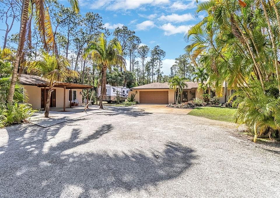 This tropical paradise will leave you speechless... you truly have to see it to believe it! The showstopper is a 12,000 gallon Koi Pond featuring 3 waterfalls and over $10,000 of exotic koi waiting for you to hand feed them. If that isn't enough, there are producing fruit trees and a few stunning rainbow eucalyptus to welcome you along the driveway. You may feel like you're in your own secluded world, but you're only 6 miles to Naples' best white sand beaches! The 2,046sf primary residence showcases the property's true beauty with four sets of sliders facing the oversized pool and Koi Pond. Of course, the offering doesn't end there as the property is capped off with an 864sf guest house ready for the in-laws or to generate additional income.