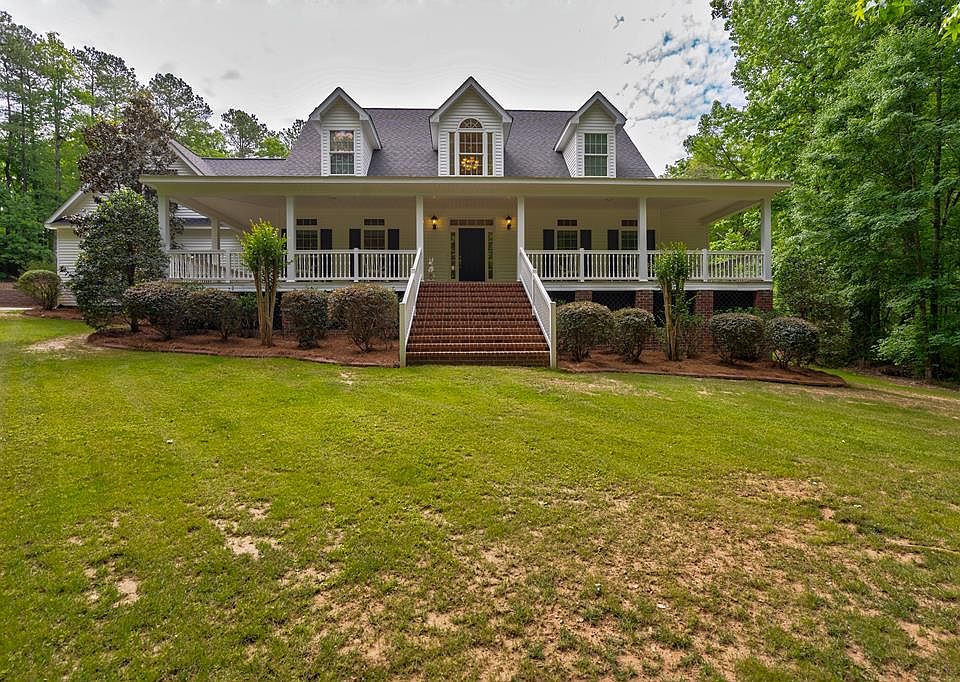 Southern charm awaits you on almost 9 acres in Appling! Long, wooded drive leads to a beautiful home w/ manicured lawn & huge, rocking chair porch! Inside, gorgeous hardwoods flow throughout the main floor & upstairs hallway. Study & formal dining off the foyer. Ahead, spacious family room features cozy fireplace surrounded by built-in bookcases & a powder room is centrally located for guests. Eat-in kitchen boasts to-the-ceiling brick backsplash, custom cabinetry, double ovens, granite counters, built-in desk, & walk-in pantry! Main level master w/ bay window offers an en-suite with brick flooring, double vanity, shiplap walls, separate water closet, tiled shower w/ multiple heads, & huge walk-in closet! Upper level holds 2 spacious guest bedrooms w/ double closets & a shared hall bathroom. Large bonus over the garage can serve many functions! Back porch & stone patio w/ wood burning fireplace perfect for entertaining & enjoying your oasis! Tons of green space for kids!