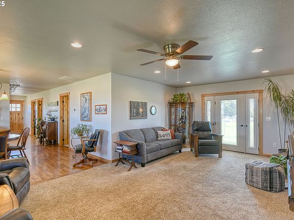Welcome to this beautifully maintained 2-bedroom, 2-bath home built in 2013, perfectly situated on a serene 2.42-acre lot. Offering 1,560 square feet of comfortable living space, this home combines modern convenience with rural charm.The open-concept layout features spacious living areas, a well-appointed kitchen, and large windows that bring in natural light and frame the peaceful surroundings. Both bedrooms are generously sized, with the primary suite offering a private bath for added comfort.Outside, the property truly shines. A 30x40 shop provides ample room for hobbies, storage, or work-from-home projects. Attached to the shop is a 12x30 lean-to that has been thoughtfully converted into a fully functional Airbnb—an ideal opportunity for guest accommodations or supplemental income.Enjoy privacy, space, and income potential—all just a short drive from town. Don’t miss your chance to own this versatile property. Schedule your private showing today!There are ditch fees of $200/yr and also dues for the rural fire department.