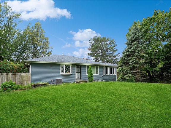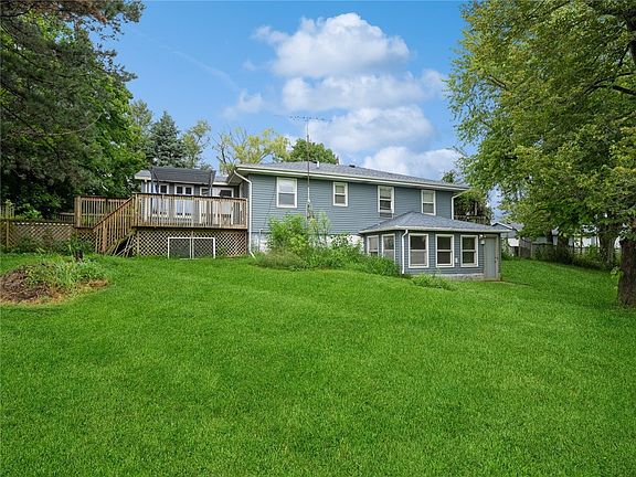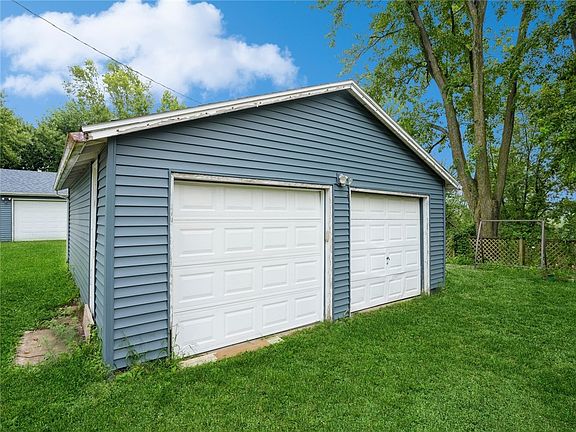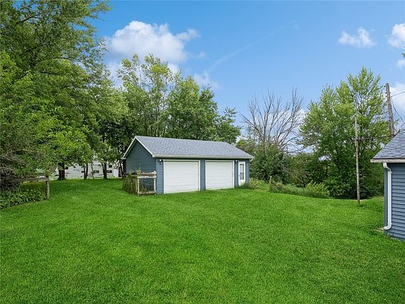 Acreage on hard surface road! Hardwood floors in bedrooms, main floor laundry w/washer & dryer included. Sunroom can be converted to a bedroom. The 4.64 acres, m/l, includes two garages, both 2-stall. Exterior features a deck, storage shed, greenhouse and a small orchard with peach, pear and apple trees.