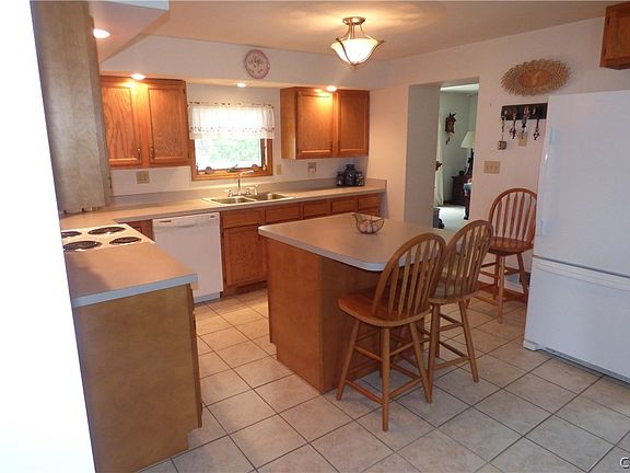 Updated in recent years, new bath, kitchen, familyroom, 30 x 40 great, pole barn/garage with 12' ceilings, insulated with propane heat and heated floors, Nice APARTMENT above garage. Enjoy sitting on your deck looking out at Oneida Creek. Convenient location just outside Oneida.