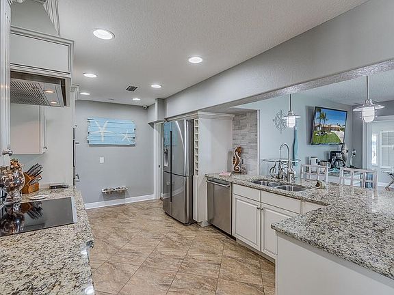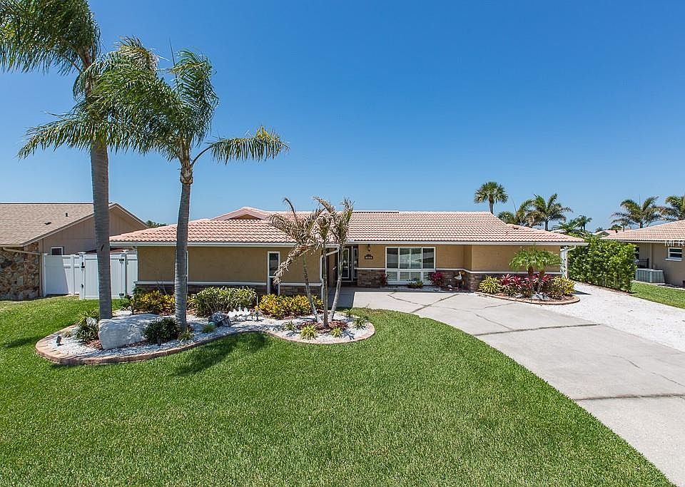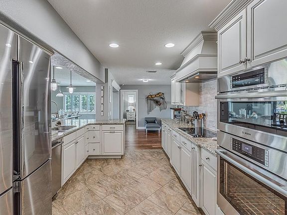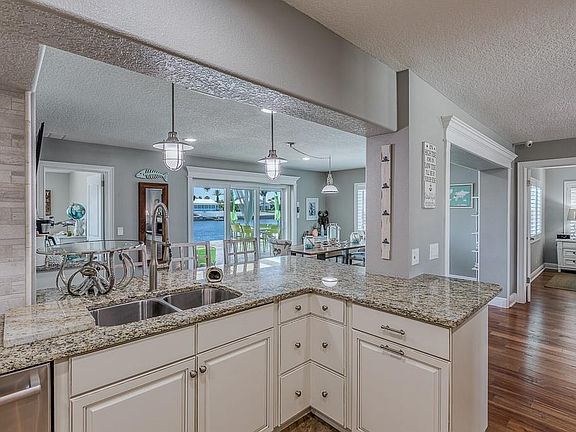 Stunning 4 bedroom 3 bathroom home has ALL the upgrades! Completely remodeled waterfront home has 80ft of seawall furnished w/2 boat lifts 16,000 & 8,000 pound & floating dock! Upgrades begin before you can reach the front door, new sod, landscaping, landscape lighting, irrigation system, crushed shell parking, vinyl fence, gutters & stacked stone w/trim. Porcelain tile foyer, all new fixtures, plantation shutters, custom walnut mantle w/electric fireplace, detailed molding, engineered hardwood flooring & more! Cook like a chef with BOSCH stainless appliances, custom cabinets, stone back splash, Samsung Chef Edition refrigerator, granite counter tops & breakfast bar w/waterfront views! Just off the kitchen is the dining area which has amazing views of the water & sunsets. Beverage station w/wine fridge in dining area. LARGE walk in pantry w/custom wood shelving system. Master suite has walk in his & her custom closet systems, Master bath offers a sliding custom barn door w/ a porthole, dual sinks, built in storage, walk in glass shower with rain head. 2nd & 3rd bedrooms shared by a full jack & jill bathroom. The 4th bedroom is large in size & has large sliding windows that showcase the water views. 3rd bathroom has dual sinks & shower. Backyard is a tropical oasis, large pavered deck space, newly resurfaced saltwater heated & a/c pool, hot tub, dock has electric & spot free water, tropical landscaping, a swim platform as a bar w/ umbrellas! ALL new electrical, plumbing & hurricane impact windows & doors.