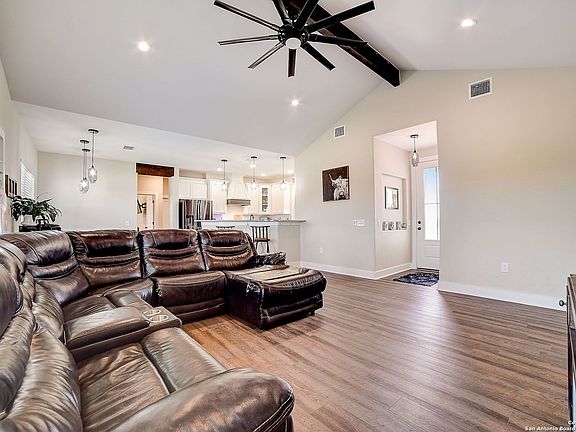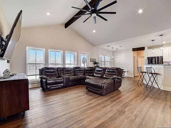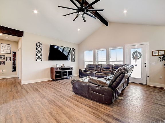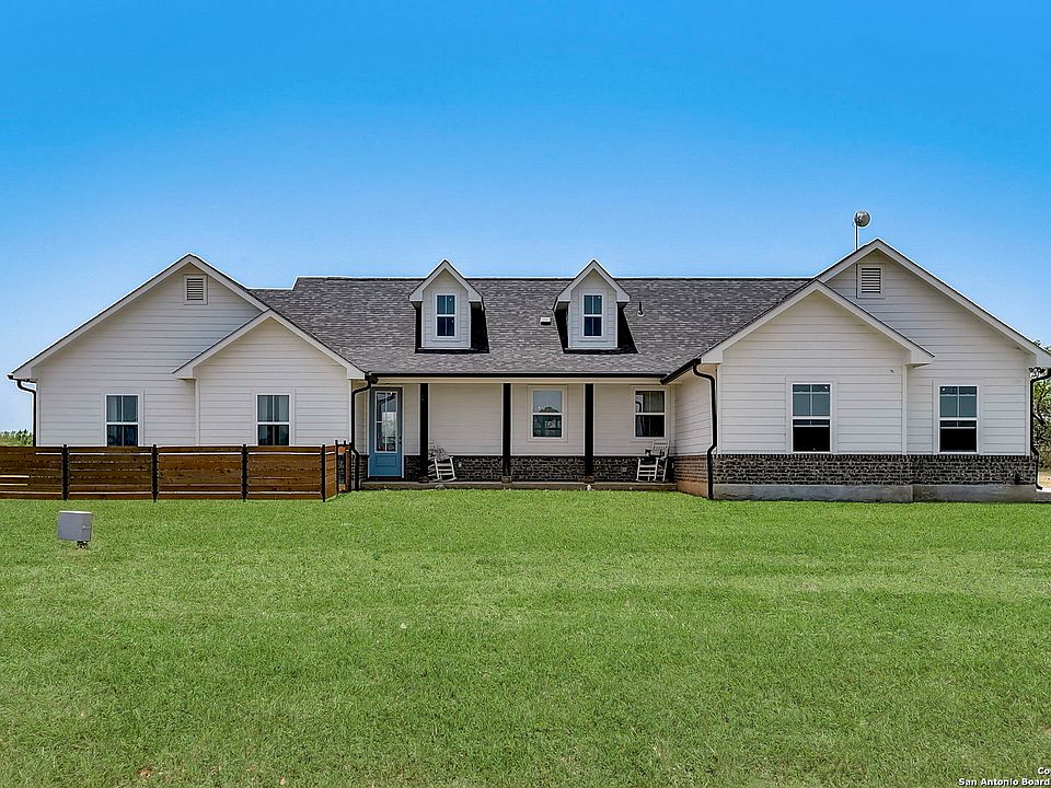 Welcome to this stunning custom one-story modern farmhouse home, nestled on over 12 acres of picturesque land. This immaculate property boasts 4 bedrooms and 2.5 bathrooms, offering a spacious and comfortable living space. Natural light floods every corner of the home, highlighting the exquisite wood beam ceilings and creating a warm and inviting atmosphere. The kitchen is a true masterpiece, featuring granite countertops, a custom vent hood, and a charming subway tile backsplash. The butler's pantry and farmhouse sink add both functionality and elegance to this culinary haven. The open-concept design seamlessly connects the kitchen to the dining area, which includes a built-in dining booth, perfect for gathering with family and friends. The primary bedroom is a tranquil retreat, complete with a tray ceiling and a spa-like ensuite. Indulge in the luxury of the massive walk-in shower with two shower heads, and enjoy the convenience of dual sinks. Additionally, an electric gate at the front entrance provides security and convenience. This property offers more than just a beautiful home; it presents an incredible outdoor sanctuary. The fully fenced and cross-fenced land ensures privacy and safety. The perimeter of the house features wood fencing with metal posts, adding a rustic touch to the exterior. The back part of the property is a nature lover's paradise, with a wooded area and a seasonal-style creek that holds water after rainfall. This serene setting allows for recreational activities like hunting and backs up to an impressive 226 acres of open land. Not only does this property provide a serene lifestyle, but it also offers practical benefits. The hay exemption lowers the property taxes, providing significant savings. The home is still covered under the builder's structural warranty, offering peace of mind to the new owners. Furthermore, animal enthusiasts will appreciate the allowance for keeping animals on the property. Embrace the idyllic blend of luxury, functionality, and natural beauty offered by this remarkable property.