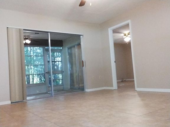 Eat in kitchen, dining area and living area combined. Ceramic tile thru out home. 1 car garage with washer & dryer hook up. Vinyl and screened back porch with access from master bedroom and living rooms. This is a patio home...like a duplex but each unit owned separately. Tenant responsible for lawn, trash, cable, water and electric