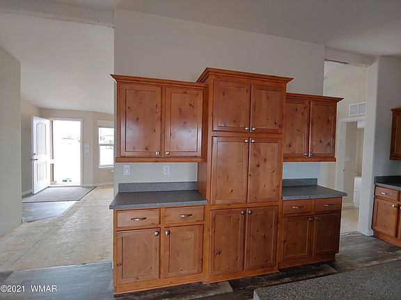 Brand new air conditioned 2021 Cavco home sitting on 3.3 acre horse property backing to a wash with mountain views on a paved road. 1920sf, 3 large bedrooms with walk-in closets & vaulted ceilings plus 2 bathrooms. Master bathroom has dual vanities plus make-up station, oversized soaking tub & separate large shower. Enormous kitchen with island and cupboards for days plus a large walk-in pantry. Upgraded staggered cabinetry with crown molding. Stainless steel appliances: gas stove/oven, double door refrigerator with water/ice dispenser, built in microwave & dishwasher. Eat-in/dining area off the kitchen & open to the great room. Beautiful, expansive picture windows with wood window sills & window coverings. Laundry with sink basin. Front deck is 8 x16 trex with a redwood hand rail. Back