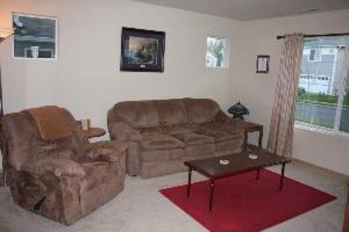 Move in Ready! Like new property, with landscaping complete. Large, open floor plan, with separate dining area, walk in pantry/utility on main floor. Full 2 car garage, with popular alley load. Upstairs has 3 bedrooms including oversized master, plus a Loft! Complete master bath with two sinks and upgraded tub. Master has walk in closet and views of Mt Baker. Neighborhood has tons of open space, come see this upgraded and finished home!