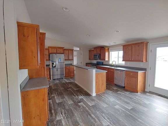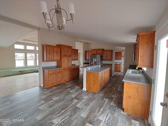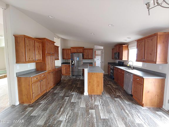 Brand new air conditioned 2021 Cavco home sitting on 3.3 acre horse property backing to a wash with mountain views on a paved road. 1920sf, 3 large bedrooms with walk-in closets & vaulted ceilings plus 2 bathrooms. Master bathroom has dual vanities plus make-up station, oversized soaking tub & separate large shower. Enormous kitchen with island and cupboards for days plus a large walk-in pantry. Upgraded staggered cabinetry with crown molding. Stainless steel appliances: gas stove/oven, double door refrigerator with water/ice dispenser, built in microwave & dishwasher. Eat-in/dining area off the kitchen & open to the great room. Beautiful, expansive picture windows with wood window sills & window coverings. Laundry with sink basin. Front deck is 8 x16 trex with a redwood hand rail. Back deck is 12 x 24 trex with redwood handrails for entertaining, barbequing or relaxing & enjoying the peace & quiet. Property backs to a wash and has mountain views. City water, APS, septic, propane heat, water heater & stove. Irrigation may be available (buyer to verify if important). The home is currently being affixed to the lot. The block skirting & decks will be completed over the next few weeks. Cavco is coming out to finish the drywall tie-together & to fix any drywall cracks from transport. Carpet will be installed once that is done. The AC will be one of the last items to be installed. A cinder driveway will be put down on the west side of the lot straight back to the home. Due to the wash, an elevation cert will be finalized once the deck & AC is installed to verify it is placed above the 100 year flood plain. Flood insurance will likely still be required, but it should be the cheapest level. The foundation is HUD approved for financing. You may go see the home, but please be careful since construction is still in progress. Beware of trenches for utilities, and the construction steps to the front door do not have a handrail and are a bit wobbly and steep. Do not attempt to access home if you are not comfortable using these steps. Do NOT open either back door as there are NO steps out those doors and there is a drop off. If construction crews are at the property, please be considerate and don't get in their way. Our goal is to have the home completed by the end of July and to close shortly thereafter. Please make sure buyer is flexible on close date in case there are any delays with contractors, materials or inspections. See list of upgrades & floor plan in Documents tab. Please note these are construction photos. If the home is still available when complete, professional pictures will be done. Owner/agent.