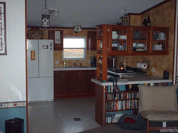 Well-maintained and move-in ready 1995 doublewide ranch on 1.6 acre corner lot with view of the countryside. This single floor plan home has a spacious mudroom/entry with plenty of storage space and closets; step up to the carpeted living room with cathedral ceiling. On one end is the master bedroom with its own bathroom, garden tub and shower; on the opposite end are two additional bedrooms and a full bathroom with tub and surround. The kitchen has lots of cupboards and a peninsula workspace; dine-in seating in the corner. Laundry is conveniently located just off the kitchen.
