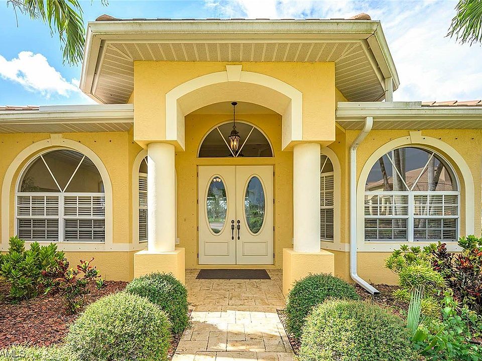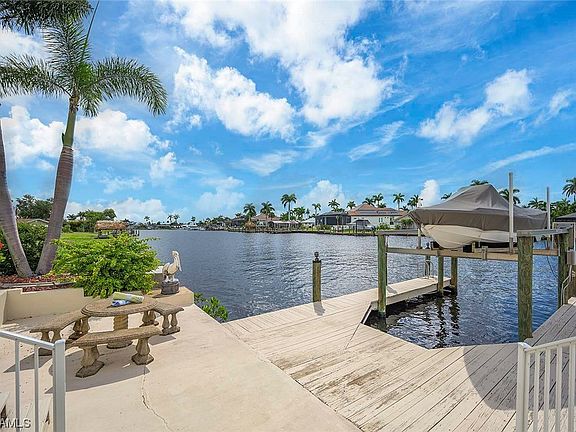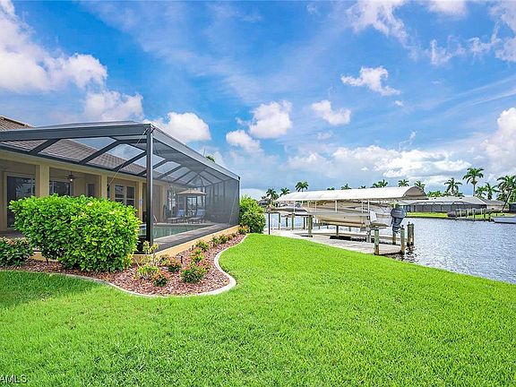 This luxurious waterfront home is located in the desirable Yacht Club Area of Cape Coral. Minutes away from the River and the open water. The property offers a luxury lifestyle, featuring a heated swimming pool, spacious lanai area and massive boat dock. The great room boasts an open concept with cathedral ceilings, separate formal dining room (could also be used as a den or office), featured gourmet kitchen, a relaxing bar and entertainment area providing an inviting retreat. The main bedroom located on the east side of the home opposite the guest rooms. The main ensuite bathroom features a walk-in shower, jacuzzi, and separate vanities. The expansive water views surrounding this properties' southern exposure provide a wonderful panorama beyond the spacious lanai. This property is being sold turn-key furnished. Both cars and boats are available for sale but not included in asking price.