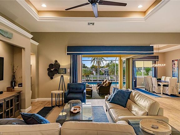 This Direct Gulf Access Coastal Design Home will check all the boxes on your Florida home wish list. It is Furnished and Turn Key! Home features, 3 bedrooms, with private office den that could be fourth bedroom. Has a spacious owners suite and bath and yes an additional full featured bedroom suite for guests, Has three baths including pool bath, two kitchens! One very large indoor kitchen and an outdoor summer kitchen for entertaining ease by the pool. Open the full opening rear sliders and enjoy Western views and sunsets overlooking the heated saltwater pool and spa. Flooring is all matching plank tile throughout. Windows and doors are high impact wind resistant and the exterior of this luxury home is hardie plank siding. There is plenty of off street parking on the drive with pavers and extra storage in the three car garage. Store your boat on a 10,000 lb boat lift. With no bridges or locks that is direct access and only minutes away from Gulf of Mexico, beaches, fishing spots and endless boating fun! Make your appointment today.
