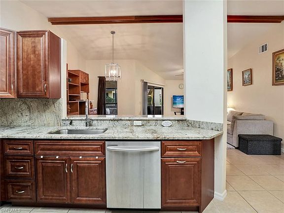Discover tranquility at Governors Island in Pinebrook Lakes, a hidden gem nestled in the heart of Fort Myers, Florida. This beautifully upgraded condo offers a perfect blend of comfort and elegance, making it an ideal home for those seeking the best in Florida living. This exceptional 2-bedroom, 2-bathroom condo boasts a series of upgrades and thoughtful enhancements. As you step into this meticulously maintained condo, you'll be greeted by a fully remodeled kitchen that invites you to indulge your culinary senses; featuring granite countertops and cabinetry that elevate both form and function. The tile flooring throughout adds an extra layer of luxury and flows effortlessly out to the upgraded patio enclosure that provides a wonderful space to unwind and enjoy the Florida sunshine. The home has a newer AC unit installed in 2019. This gated community is strategically located, placing you right in the heart of many of the amenities Fort Myers has to offer. The Bell Tower Mall, with its array of restaurants, movie theaters, shopping, and bars, is conveniently within a half mile. RSW Airport is less than 10 miles away and Fort Myers beach is 11 miles away.