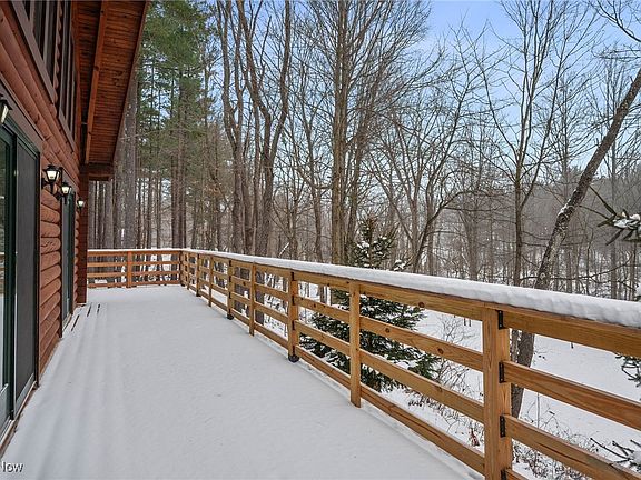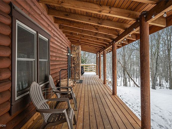 Tucked away on a 4.57 acre stunning, wooded lot, you'll find this beautifully maintained log home that offers the perfect blend of rustic charm and modern amenities. A wraparound porch sets the tone, inviting you to take in the peaceful surroundings. Inside you'll be welcomed into the entry with an open floor plan with pine floors throughout. The great room holds a stunning stone fireplace which opens to the eating area and the tastefully updated kitchen with new cabinets and stove in 2020. Just down the hall, you'll find the powder room with pocket door and storage closet. A first floor owner's suite provides a provide retreat with a full bath featuring shower with tile floor, a double vanity and walk in closet with organization system. Upstairs you'll find a cozy loft to unwind. Two additional bedrooms with closets share a full bath complete with double vanity, tub/shower combo and closet. Additional living space awaits in the finished walkout basement featuring a living area, second kitchen, full bath and a dedicated recreation room perfect for guests, hobbies or extended living space. Laundry and storage area. An enclosed porch leads you out through the walkout level and offers more space to enjoy the beautiful views of this property year round. Major updates to this beautiful home include a full tear off and replacement of roof on both the home and the garage in 2020, windows in 2021, furnace/condenser/heat pump in 2018-2019 and sump pump in 2023 for peace of mind. Outside, this property truly shines with an oversized detached three-car garage for all of your projects. Shared driveway. Don't miss this rare opportunity to own your own piece of paradise.
