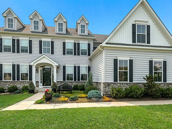 Welcome to this absolutely stunning semi-custom 4 Bedroom, 2.5 Bath Colonial with custom stone ledge front and covered front entry. The custom front door features sidelights & Palladian transom that opens into a 2-story Foyer with a gorgeous custom chandelier & turned oak staircase with open balusters & custom oak rails. The first floor offers 9’ ceilings and custom hand-stained oak hardwood floors finished onsite. The Foyer opens to the formal Living room on one side and the first-floor office with double door entry to the other side. The living room features recessed lighting and leads to the formal Dining room offering bullnose chair rail, crown molding, custom light fixture & double window with a view of the rear yard. The Eat-in Kitchen features Shaker-style 42” cabinetry with custom moldings, maple boxes, soft close doors and drawers, and champagne bronze pulls. Also featured in the Kitchen are beautiful Quartz countertops, custom imported glass tile backsplash, center island with breakfast bar & deep rollout drawers, beautiful lighting, an extra deep stainless steel under-mount sink with champagne bronze faucet, and stainless steel GE Cafe appliances including a built-in convection microwave wall oven, a 6-burner gas range with overhead vented range hood, built-in dishwasher & Fisher & Paykel counter-depth refrigerator. The Kitchen opens to a bright & airy Sunroom with a vaulted ceiling and custom ceiling fan, oversized triple window, and sliding glass door with a transom window that leads to a custom EP Henry Bristol stone hardscaped patio with propane gas connection for grill/generator overlooking the rear yard. The spacious Family room off of the Kitchen & Breakfast room offers recessed lighting & gas fireplace with custom wood trim & mantle & oversized windows flanking each side of the fireplace. The Mudroom is located off the eating area and offers access to the 3-car side entry garage and features a beautiful custom tile floor & custom built-in organizer with storage for shoes & coats. The second level offers a Master Bedroom Suite with a deep tray ceiling with custom ceiling fan, plush wall-to-wall carpet, Bali room darkening cellular shades, a huge 10x10 walk-in closet with a full organizer featuring built-in cabinetry, shelving, closet rails & drawers for storage and double modern chandeliers. The luxury Master bath features an oversized seamless glass walk-in shower with rain showerhead plus handheld shower, gorgeous custom tiled shower walls & marble waterfall, ceramic tile floor, large double vanity with crystal knobs, custom light fixtures, and a separate water closet. The three additional large bedrooms all offer Bali room darkening cellular shades, wall-to-wall carpet, large closets, ceiling fans & custom trim casing. Hall Bath features tub/shower combination with custom ceramic tile walls & floor and a separate double vanity area. Convenient 2nd-floor Laundry room has a window, built-in shelving and a closet for storage. This property also offers a full, daylit Basement. The 1-acre lot has been enhanced with stunning landscaping designed by Bucks Country Gardens. Other features include a whole house water softener, reverse osmosis filtration and UV light with connection to the refrigerator and kitchen sink, 5 ½” baseboards and 3 ¼” window casings throughout, Crystorama & Feiss Upgraded lighting throughout, CAT6 Ethernet cable jacks behind every TV that centrally connects to a panel in the study where the internet connection resides which is great for streaming movies on smart TV’s. This spacious 13-home community is in an intimate setting adjacent to a small park & pond in Owl’s Nest Farm development located in award-winning Central Bucks School District and close to Doylestown borough shopping.