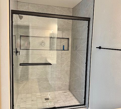 The kitchen is equipped with new premium LG and KitchenAid appliances, including a refrigerator and stove, adding both style and functionality. All three bathrooms have been upgraded with new showers for a fresh, modern feel.