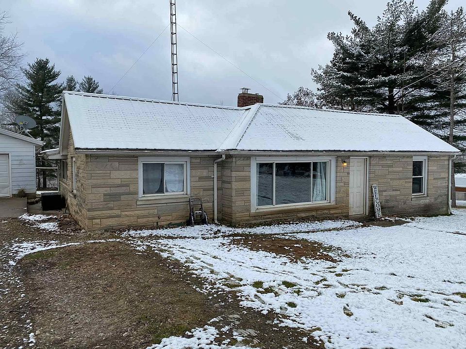Selling "as is". Check out this 2-3 Bedroom 1 Bath limestone ranch home with metal roof. Located on 1.73 Acres in Springville IN. Easy commute to Crane/Bloomington. 1720 SF with a 2 car detached garage, there is also a large covered deck for entertaining. Inside you will find a spacious rustic-style living room with wood floors, wood planked ceilings and walls, plus a solid brick wood-burning fireplace. Cozy kitchen with bright white cabinets. The mudroom/laundry room is a generous size, also can be shared as a home office. So much potential for his lovely home. Taxes show no exemptions.