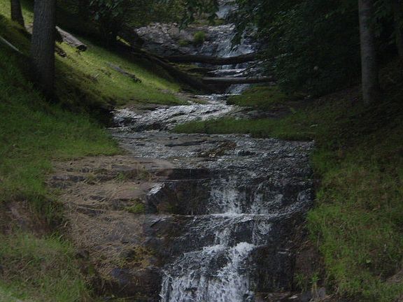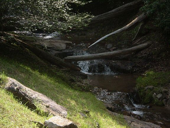 Savannah- Nice log home located conveniently between Franklin, NC and Dillsboro, NC with a creek and waterfall. Home features great room with gas log fireplace, 2 bedrooms, 2 baths, central heat and a/c, enclosed heated and cooled porch looking down on waterfall. Sale also includes park model with well and septic. Second large covered parking area (a small motor home will easily fit in there).