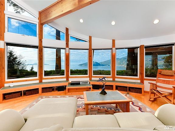 Walls of windows frame sweeping mystical & ever-changing water, mountain & island views in this gracious villa on magical Guemes Island. Exposed beams, driftwood arches & beach rock capture island living. Flowing floorplan to entertain generations: central great room w/ chef's kitchen, flanked by 2-story wings & main floor ensuite master. French doors to covered outdoor view dining & wrap-around deck. Summer sunsets fade to starry nights during candle-lit dinners after a day at your beach. Too many features to list. Close access to shared beach ownership. 188 +/- feet of waterfront. Quaint 5 minute ferry ride from Old-Town A-Town to Guemes Island, the "secret" San Juan Island.