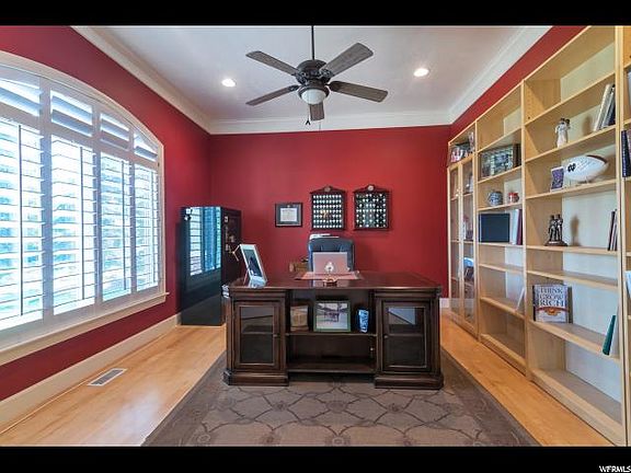 This custom built home is fully finished, sits at the end of a cul-de-sac on a 0.67 acre, fully fenced lot, with beautiful mature landscaping, including 17 pine and 20 deciduous trees and a beautiful water fountain and fire pit. This home's kitchen/family room are absolutely amazing with 16' vaulted ceilings and huge open design boasting a large 270 foot laundry/craft room, 6 bedrooms, an office, and beautiful basement with fire place. It offers a great view of Heritage Park; there are no other buildings/homes to see looking out the kitchen window, and is a short walk away from the Murdock Trail and Highland Glen Park and pond.