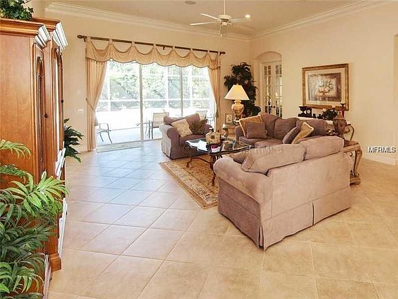 Located in the gated community of Rosedale Golf & Country Club, this Pristine V floor plan is one of our most popular designs. Former builder's model features OPEN great room design, high ceilings, 7-1/4" crown moldings, designer tile, spacious living. The chef's kitchen is large & inviting with wood cabinetry, solid surface countertops, large center island, spacious breakfast nook and plenty of room for family & friends to gather around and socialize. After all, we all know "everyone ends up in the kitchen." Large master suite with extended bay window & private pool access. Master bath features separate vanities, Roman shower, lg soaker tub, decorative tile and lg walk-in closet. Den with private full bath overlooks pool and can easily be used as a 3rd bedroom. Spacious pool/spa deck with mature tropical plantings offer the true "Florida feel" - palm trees blowing in the afternoon breeze while you enjoy a cooling dip in the crystal blue pool, how nice! Central vac, in-wall pest control and radiant barrier too! Oversized 2.5 car garage allowing ample storage, room for golf cart or workshop too. Qualified tenant currently in place and has added some of their personal furnishings to home, but many items pictured in photos are available for sale also.