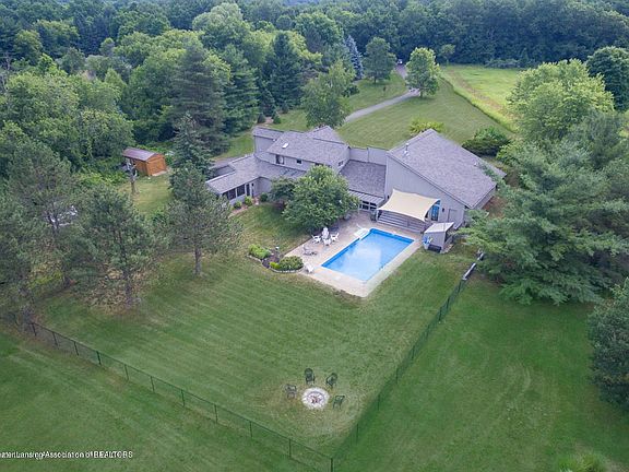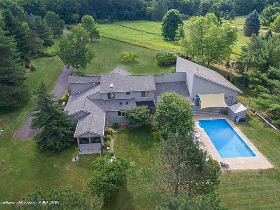 What a great place to call home! Large and light with plenty of room for everyone, this 4-5 BR, 3-1/2 bath country contemporary sits on 10 spectacular acres only ten minutes from Meridian Mall. A cook's kitchen has extra-tall cherry cabinets, quartz countertops, a huge island, dual prep sinks and large walk-in pantry. Bamboo floors feel good underfoot and the view is serene and beautiful. Cathedral ceilings extend to much of the main floor including a large living room and family room with custom gas fireplace. The 1,500 square foot addition includes a huge flex room, 10' ceilings, floor to ceiling windows facing the pool area and screened porch. Two large bedrooms, a full bath and large laundry round out the space - perfect for a children's wing, in-law apartment, home theater or ???. The oversized master features a cathedral ceiling, dual walk-in closets, twin vanities and frameless tile shower. Two more large bedrooms and a full bath are located upstairs. Professional landscaping.