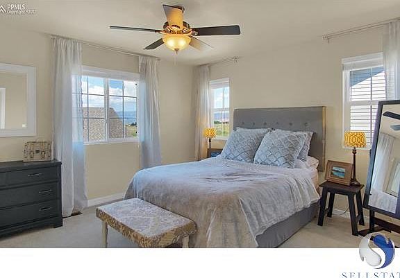 You must see this townhome in D20! Get your end unit with a view of Pikes Peak and upgrades without waiting for it to be built! You will feel right at home in the well lit kitchen with dark cabinets and floors. Beautiful barn door separates the master bedroom and bathroom. Over-sized garage fits two large vehicles with extra space for storage.