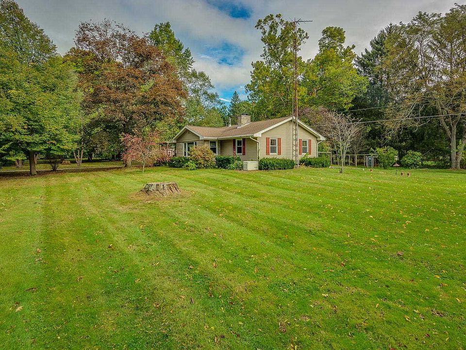ENDLESS POSSIBILITIES! 17 acres, some wooded for riding trails, 30x80 horse barn with water and electric, pasture has electric fence, orchard with walnut and cherry trees, fenced area for additional animals, storage sheds, 2 car detached garage that is extra deep (28x30). Let your imagination go.This solid home has good bones,whole house generator and full basement that could be finished for more living space. Original hardwood floors throughout, 2 large bedrooms with spacious closets. Living room with working wood stove and large exspansive window for natural light. Large eat-in kitchen with plenty of cabinets. Formal dining room with sliders to deck for enjoying the deer and turkey that roam in the evenings. What are you waiting for? This unique property wont last long.