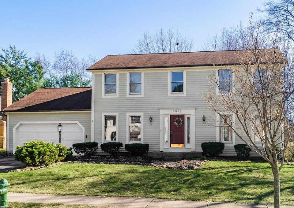 Sophisticated Colonial Architectural with a twist! Unique floor plan that will not disappoint. Large open Family Room with vaulted ceiling, stone fireplace, hardwood floors, new floor to ceiling windows and double French Doors open to Deck over looking level fenced yard. Kitchen has new granite counters, white cabinets, with large breakfast bar and island, newer SS appliances, ceramic tile flooring and sunny bay window eating area. First floor Powder room and Laundry. Three large Bedrooms with Master en suite and updated hall full Bath. Finished Lower Level, great for media room or play area with lots of unfinished storage area. Located in popular Shannon Park/Hemingway neighborhood close to schools, Dublin Recreation Center, shopping and freeways...HURRY HOME!