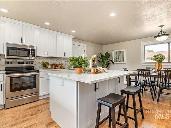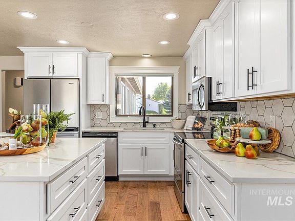 Nestled on nearly half an acre in the charming South Boise, this highly sought-after single level home has been completely remodeled and is ready for it's new owners! As you step through the front door, you'll be greeted by an exquisite interior enhanced by rich LVP floors, an inviting brick fireplace, an open-concept kitchen, and multiple inviting living spaces, perfect for entertaining. The chef's kitchen features quartz countertops, stainless steel appliances and a large island, perfect for prepping dinner. All bathrooms have been completely updated with new vanities and tiled showers, plus the home comes with a brand new HVAC system and roof. The expansive fenced backyard features a double vinyl gate, providing ample room for RV/boat parking and other recreational vehicles, with boundless potential to create a dream workshop or a private swimming pool oasis! No CC&Rs and no HOA!