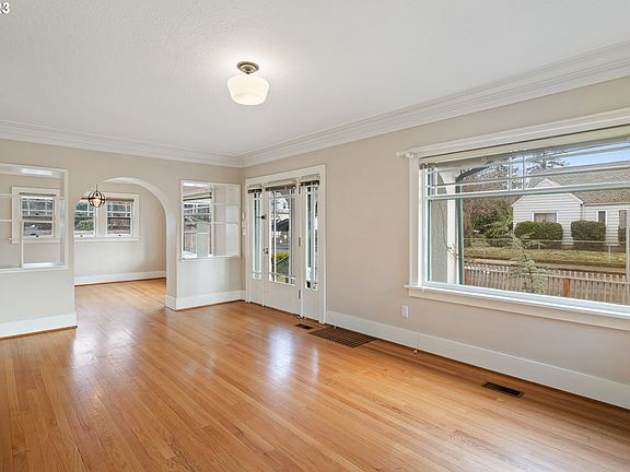 Darling bungalow with lots of original charm! Light & bright from the moment you walk in, lovely hardwoods, tall ceilings, tons of built-ins & crown moulding throughout. Relax on the front porch or in the fully fenced yard with tons of space to roam! Sizable garage with ample storage. Spacious, clean dry basement with exterior access, great for separate living quarters or possible ADU. Lents park blocks away. This one is not to miss! [Home Energy Score = 1. HES Report at https://rpt.greenbuildingregistry.com/hes/OR10207265]