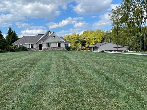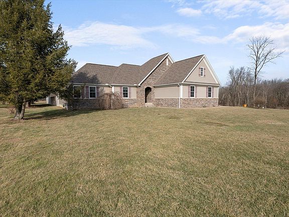 This beautiful property offers a home built in 2014 by Schumacher Homes w/ so many upgrades! The all-seasons room is full of windows to enjoy the sights of wildlife & view a branch of the Kokosing River. This 2,185 SqFt open floorplan home w/ 3 beds, 3 full baths & den/office has so much to offer. Hickory cabinets, quartz countertops, vaulted ceiling, large pantry & main level laundry, no detail was overlooked. The extra wide hall/doorways are a fantastic feature. Finish the basement & have double the living space w/ an exterior walkup & whole house generator! The large barn is well insulated w/ concrete floors & has the perfect space for entertaining guests! Plenty of workspace/Storage. Over 11 ac. of country living with Delco water-2 miles to 95/71 exit & just 30 min. from Polaris!