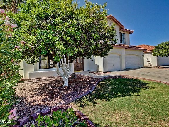 Desirable Marshall Ranch, Freshly painted, Newer Carpet, N/S exposure, Fantastic floor plan, Vaulted Ceiling specious living Room, Kitchen open to the family room w/ cozy wood burning fireplace & French door access to the covered patio, Large Master bedroom with double French door access to the 2nd covered patio down stairs, and three bedrooms with mirrored closet doors upstairs, Laundry room w/utility sink, 3 Car Garage w/Built in Cabinets. and just finished epoxy. Excellent location, fantastic opportunity to rent in Marshall Ranch where Elementary school located inside the subdivision, and high school (ironwood) across the street, GCC within reach, ASU west within minutes, Canal, Bike route, Parks nearby. make it your home start now.