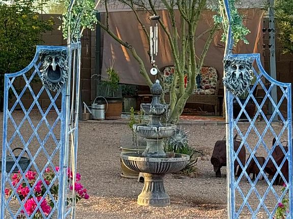 Step outside to your private backyard resort: a sparkling pool with automatic cover, multiple shaded sitting areas, and a serene, park-like setting perfect for entertaining—or just relaxing under the desert sky. Pool and patio decks will be refinished within a week, ready for summer fun!