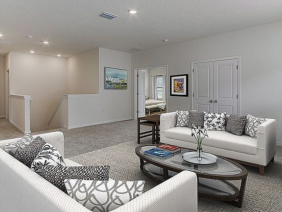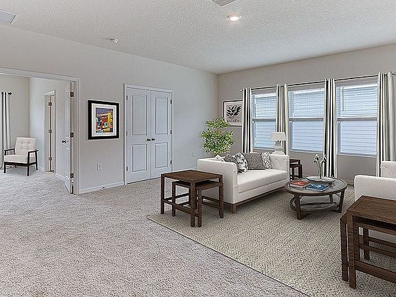 This two-story, all concrete block constructed home has a large open concept first floor with a kitchen overlooking the great room, dining area, and a covered lanai. A flex room at the entrance of the home, as well as a spacious guest bedroom and full bathroom, complete the first floor. The Master Bedroom is on the second floor and has an elegant sitting area. The Master Bathroom features dual sinks, garden tub and walk-in shower. The Master Bedroom closet is the size of a small bedroom. Very large loft area that can be used as a secondary family room. This home comes with ceramic tile in al living areas and wet areas. Bedrooms and loft are top of the line carpet.