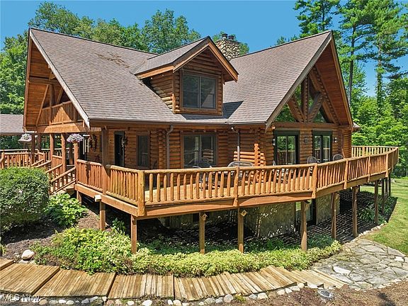 This awesome custom Log Home is nestled on 5.9 very private park-like acres complete with a beautiful lake