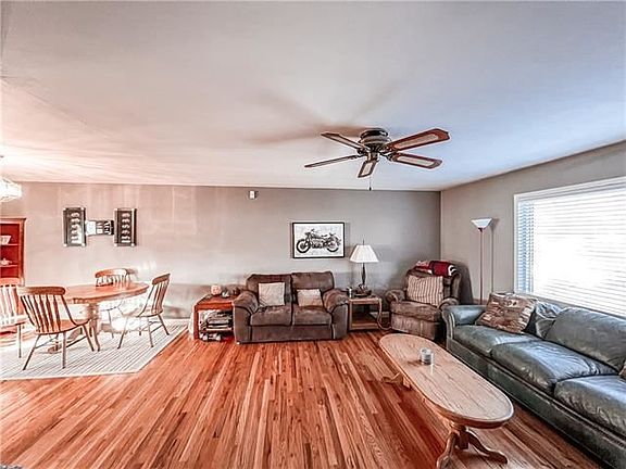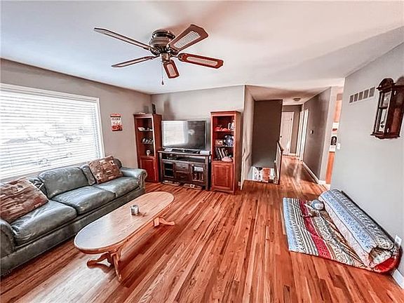 Fantastic move-in ready home! 2 Car Garage and generous sized living area on the ground level. Go up the hardwood stairs to the spacious main living room area. Gorgeous hardwoods continue from the living room to the dining room and then down the hallway and includes all 3 beds! Recently renovated bathroom has vanity with granite top. Enjoy coffee and gatherings in the sunroom off the dining area. Patio and pergola off the sunroom. Large backyard with 2 storage sheds for mower and all else. Previous owner had windows replaced and additional insulation blown-in attic. Furnace and AC new within the last 2 years.