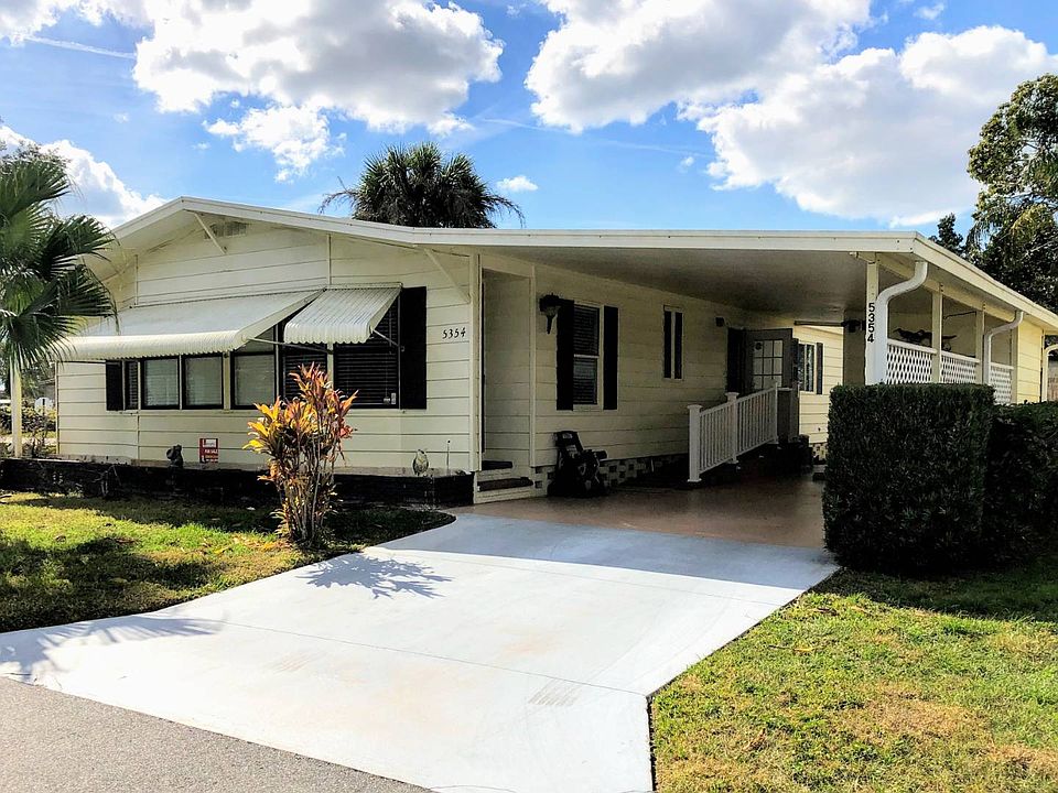 Spacious with a great layout! This 2 bedrooms 2 bathroom includes a large enclosed sunroom (which can be opened to add to the under air sq ft) Currently 1344 sq ft do lots of room and tons of storage space. Sits on a corner lot and is not far from the clubhouse and pool area. Also, this home has a carport, attached shed (with washer/dryer), private patio area, and a handicap ramp. So many upgrades, some are new vapor barrier, ac approximately 2016, roof 2010 approximately, washer and dryer in shed, cathedral ceilings, enclosed lanai, corner unit. The leased land is $1074/ month includes water, trash, sewer, lawn maintenance, taxes, and irrigation. Gated and guarded pet-friendly resort-style community Camelot Lakes Village Is a This 55+ community offers the best of the Florida lifestyle. This gated manufactured home community boasts two clubhouses, two resort-style pools, and countless amenities. This scenic community is close to everything, less than 10 miles from Siesta Beach, everything from dining, and shopping, to sporting venues and Sarasota's well-known beaches. In Camelot Lakes Village, the amenities include Card room, Billiards, Library, and Saunas. Everyday activities offer Tennis, Shuffleboard, Horseshoes, Bingo, and Arts & Crafts. Camelot Lakes Village promises a relaxing and enjoyable retirement for its residents. The residents can not get enough of the tranquil life-style Camelot Lakes Village provides. This pet-friendly community is just the right fit for your ideal retirement. All listing information is deemed reliable but not guaranteed and should be independently verified through personal inspection by appropriate professionals. Integrity Mobile Home Sales cannot guarantee or warrant the accuracy of this information, measurements or condition of any property. Measurements are approximate. Lot rent subject to change.