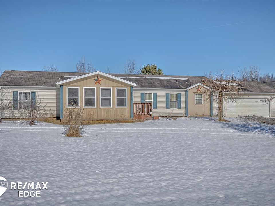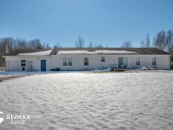 Spacious 3 bedroom 2 full bathroom ranch sitting on a beautiful 5 acre private lot with a 60x40 pole barn insulated with heat/electric (two 12x12 drive thru doors) and a 60x100 stocked pond with a beach. The open concept floor plan flows nicely featuring a huge kitchen, stone gas fireplace, master suite with a sunken tub and stand up shower, first floor laundry, water filtration system, and a brand new sliding glass door with amazing scenic views of the wildlife in back yard. Relax in the 3 season room on the front of the house with natural wood finish, vaulted ceilings, and lots of natural sun light. A paved road and concrete driveway leading to the 2-car attached garage make this the perfect home for any buyer.