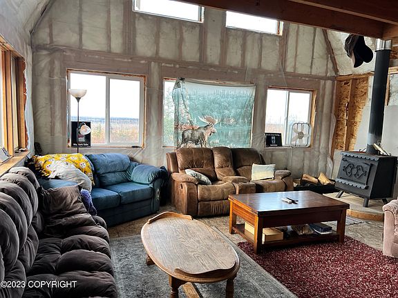 Charming Caribou Hills Cabin with inlet, mountain and glacier views!! This cabin is offered turn key with a generator, wood stove, all the furniture, beds, even dishes. Move in and enjoy 5.88 acres of beautiful Alaskan views. Drive in your 4WD in summer and snowmachine in winter. Complete with an outhouse with a view, a fire pit and multiple trails around. Possible Owner Finance. Call today!!