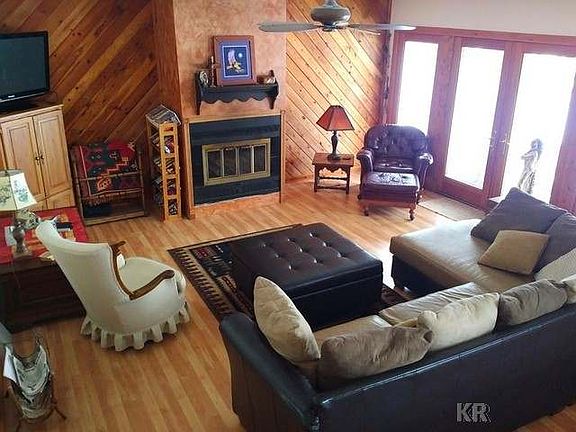 Wow! Check out this rare beauty on beautiful Blue Lake in NW Gladwin County. Not many homes pop up for sale on this very desirable, clean fishing/swimming lake. This gorgeous home features over 2400 sq ft of living space, plus an additional media room in the basement level with approx 250 additional finished sq ft. You'll love the vaulted knotty pine ceilings, built in dining rm storage, gas log fireplace, spacious rooms & the amazing panoramic view of the lake. Enjoy lake views from the dining room, living room, master bedroom & sewing room. You'll appreciate beautiful sunsets in all seasons. Grab your fishing pole for some of the best fishing in the two county area! This super clean lake has an A+ rating for some of the cleanest lake water in Mid Michigan. Blue Lake is spring & creek fed, offering crystal clear waters. The beautiful sandy swimming beach is just a short walk down the road. Blue Lake also has a private park w/play equipment & walking trails leading to state land.