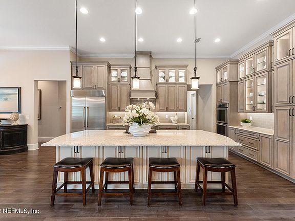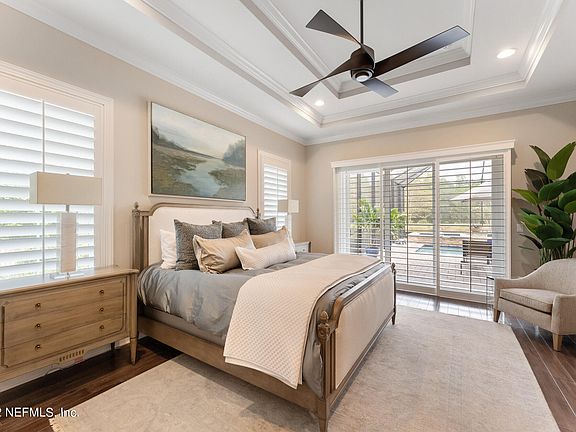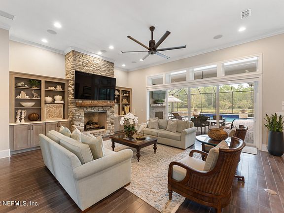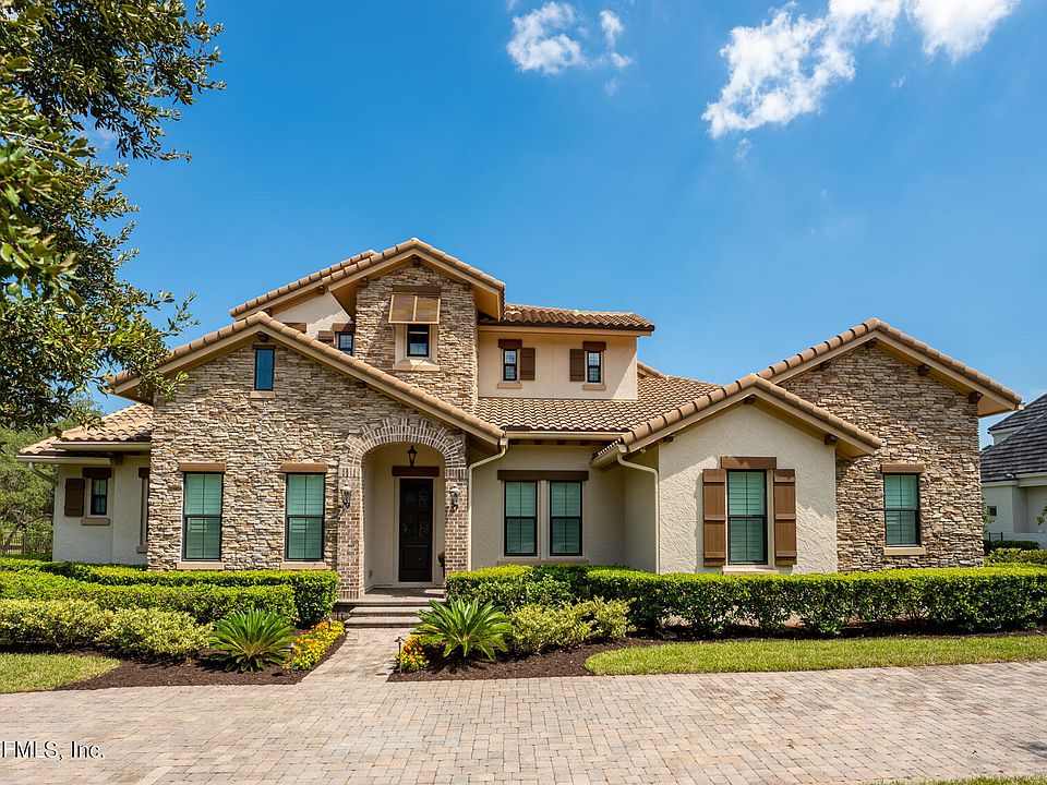 Incredible Tuscany style custom home, built on estate, water view lot, located in highly desirable Pablo Creek Reserve. Huge, outdoor screened entertaining space with custom, Eagle designed and installed saltwater heated pool and spa, gas/wood burning fireplace and complete summer kitchen-including brand-new outdoor grill. Exceptional attention to details everywhere in this home—see documents section for a summary. Solid hickory hand scraped hard wood floors throughout the first floor and parts of the second floor. Custom plantation shutters and electronic room darkening blinds in the family room. Custom cabinetry and shelving in all closets and bedrooms. Walk-in pantry with two entrances, sink, ice maker and dishwasher. Very large, convenient laundry room with extra counter space and cabinets for storage. Separate Wine room/grotto with custom made iron door. First floor guest suite with separate bath, own entrance, and garageperfect for in-laws or nanny. Second floor laundry room and loft area with built in tech center. 3 car garage with custom flooring, cabinets, and shelving for plenty of tidy storage. All appliances convey including a brand new LG washer and dryer and outdoor grill, just installed, and water softener and a kitchen tap Apure 550 5 Stage Reverse Osmosis system which takes the salt out of the water for cooking and drinking. All mounted TVs convey. Select home furnishing are available for purchase outside of closing.